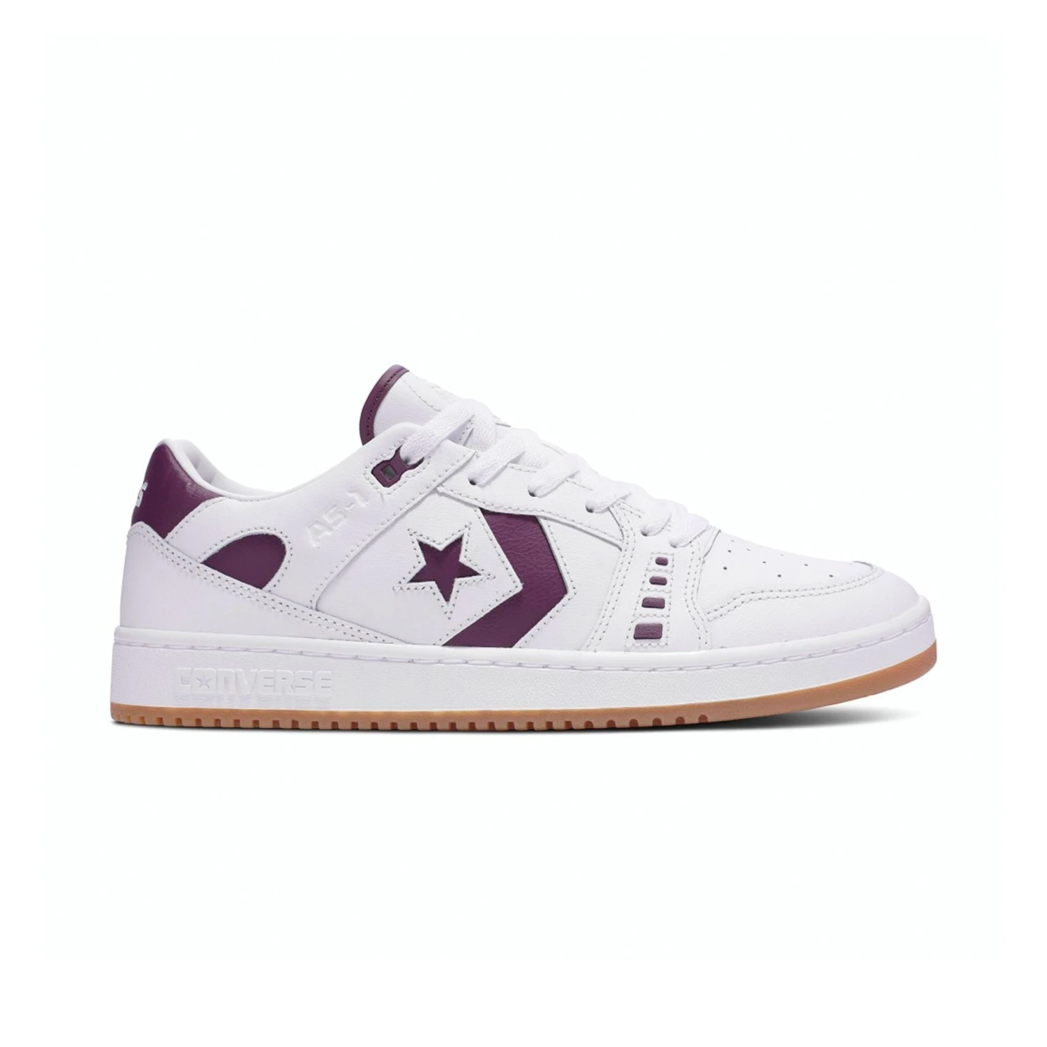 Low-top skateboarding shoe with a full leather upper for optimal durability