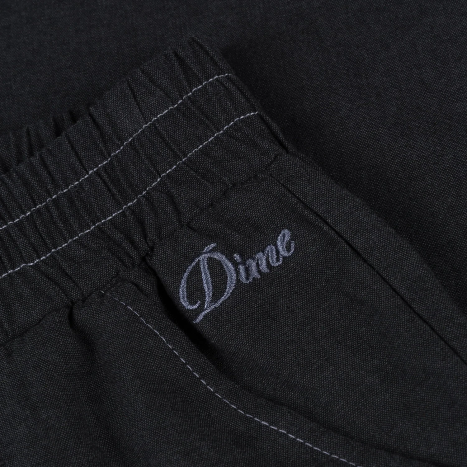 Cursive logo embroidery on left front pocket