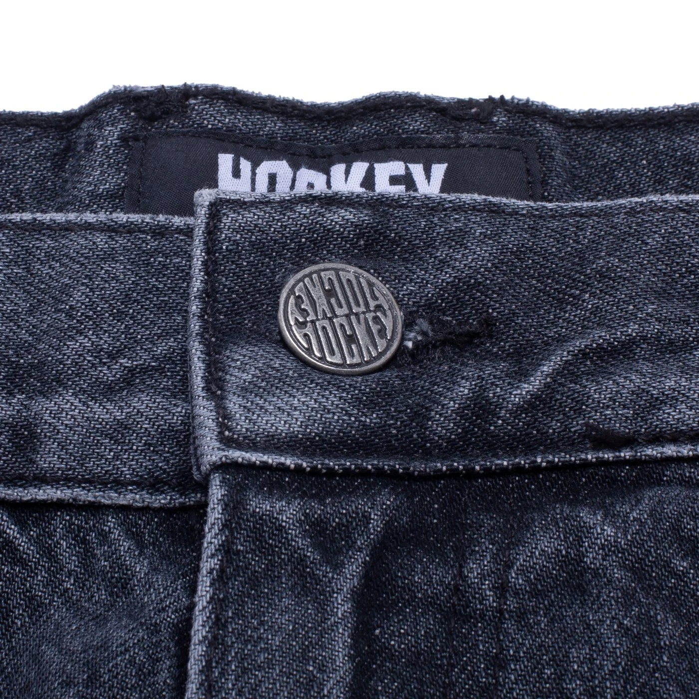Woven Hockey Art Stitched Into Left Knee Panel With Custom Hockey Tack Buttons And Rivets.