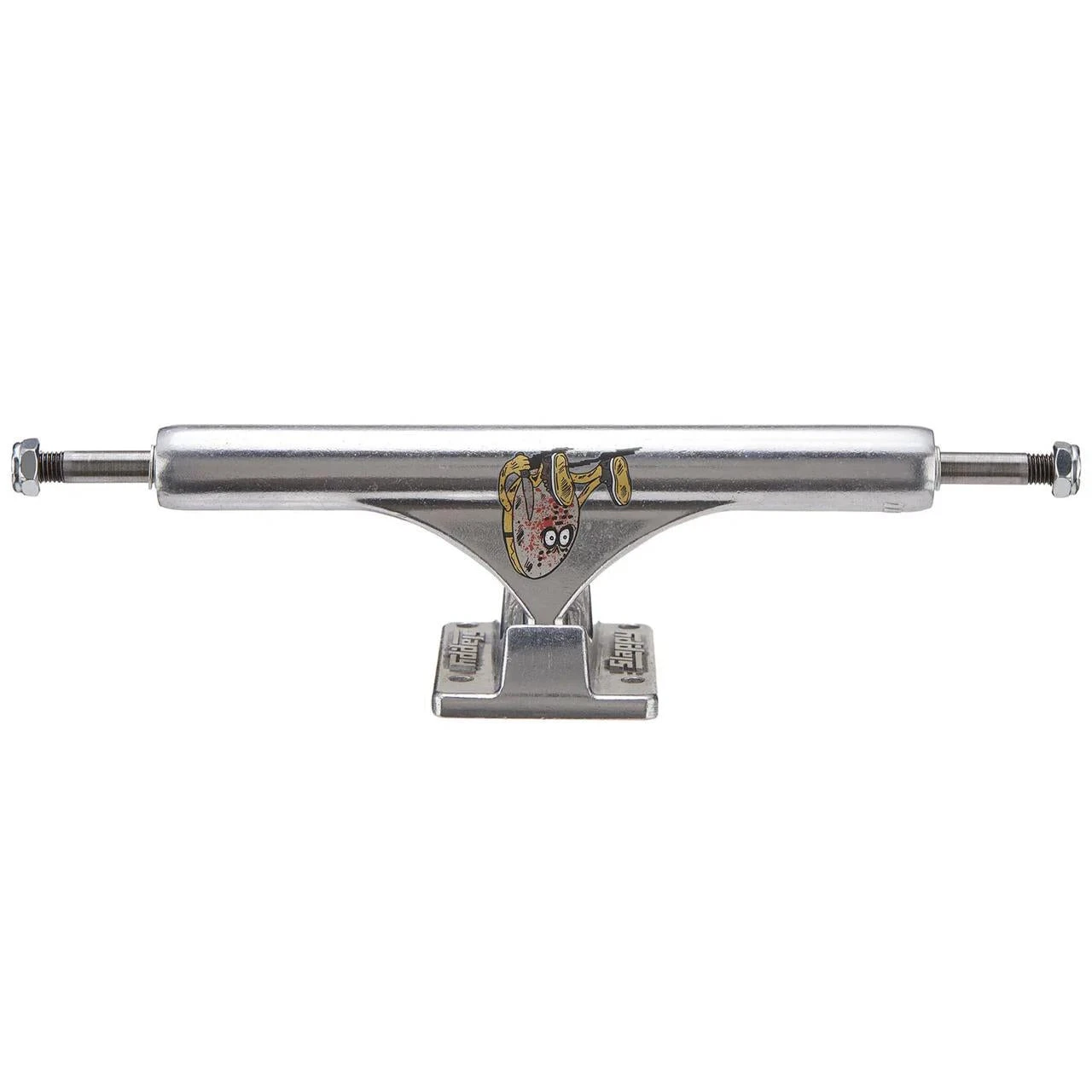 Slappy’s New ST1 Curb Killer model featuring a polished hangar with the Heroin Skateboards Curb Killer graphic by owner and artist FOS.