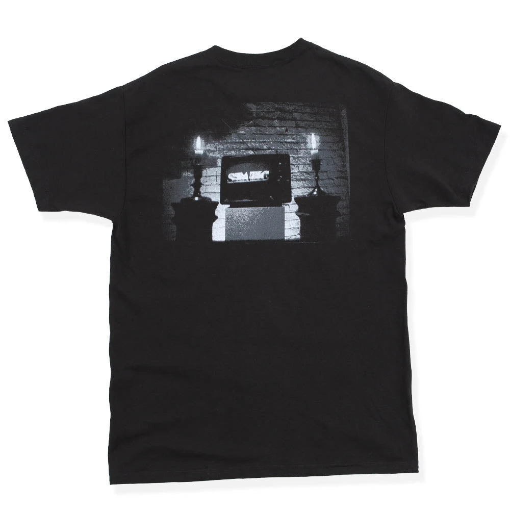 16mm film still graphic on back with a Static VI logo on the front chest.